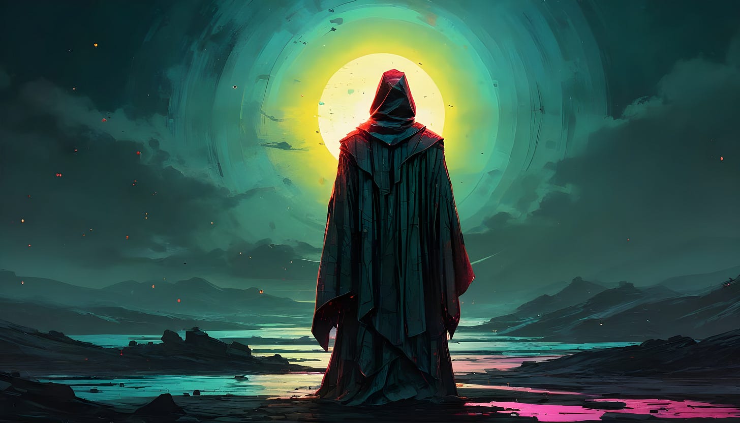 The Sacred State sold us a Faustian lie, the delusion that you are your function in the machine. And we believed it, oh yes. It felt good to be a function, you see. Predictable. It's safe and cozy to be the soft-edged rectangular tangerine in Rothko's Green and Tangerine on Red. That contrast of joy and anxiety, carefully crafted to evoke deep emotional responses. You know? Anyways, vote and worry not your little head. The State knows and cares until one day, it doesn't. The parent who ghosts. The multitude shuddered, soft edges blurring. What now?
